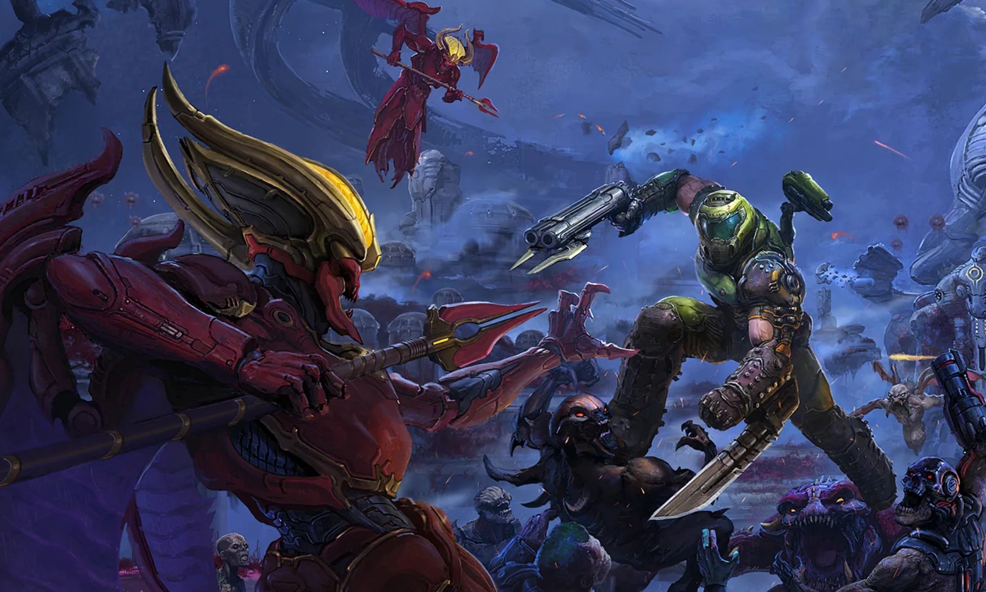 The Ancient Gods, Part One – це перше завантажуване розширення вмісту для Doom Eternal для одного гравця, яке раніше було доступне як елемент попереднього замовлення для покупців програми Year One Pass. Розширення додає нових ворогів, нові рівні та сюжет. В основі The Ancient Gods – ті ж бої з демонами на аренах різного дизайну і розміру, а також рідкісні епізоди з платформингом. The Ancient Gods – це, по суті, три великих «майстер-рівня» з викрученою до стелі складністю, які вимагають від вас максимальної зосередженості, віддачі і ідеального знання бойової системи.